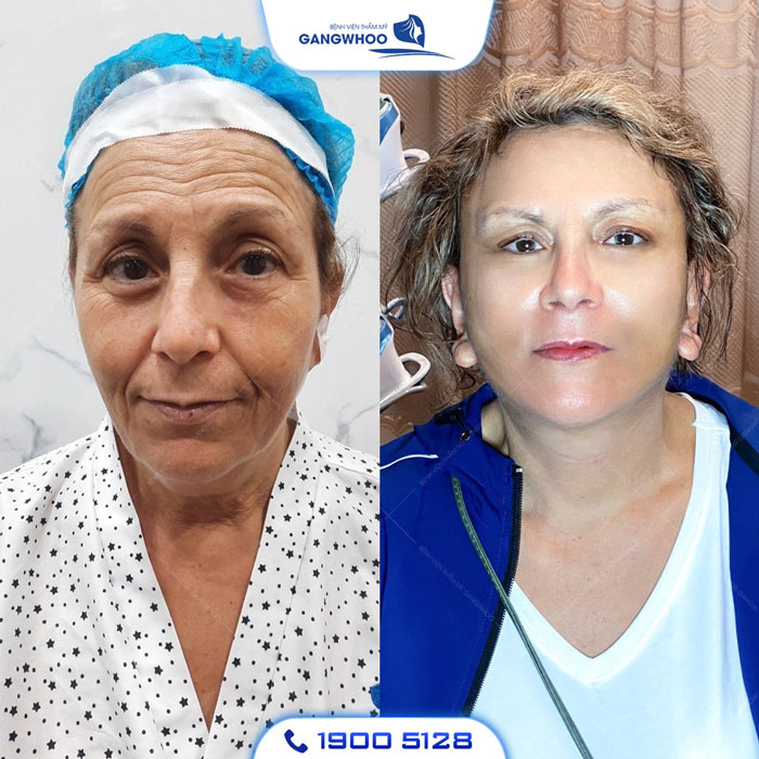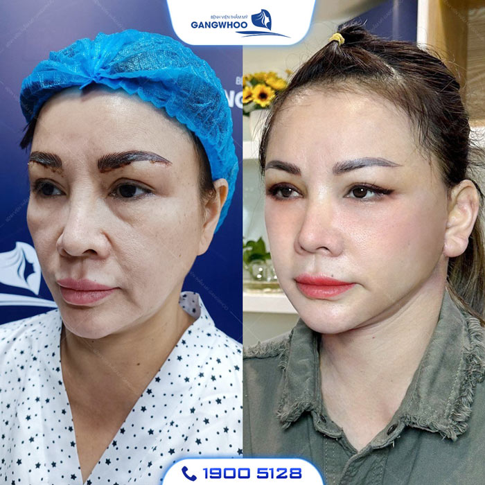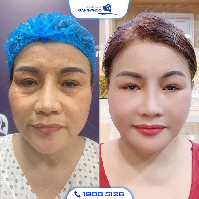 Hình ảnh khách hàng trước và sau căng da mặt tại Gangwhoo